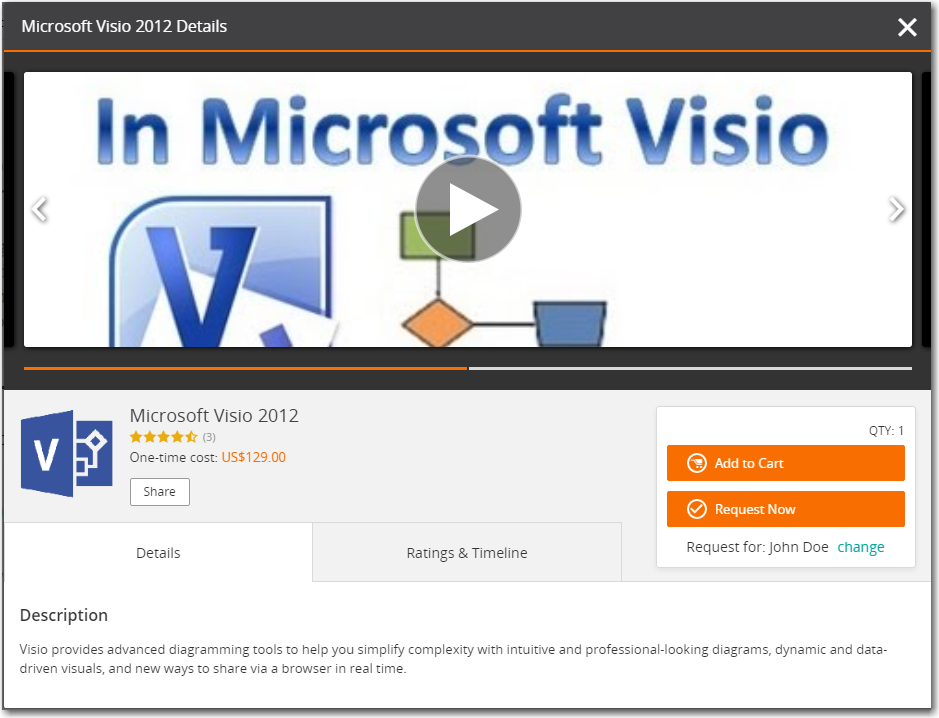 Click on the catalog item that you want to request. Detailed information about that catalog item is listed.