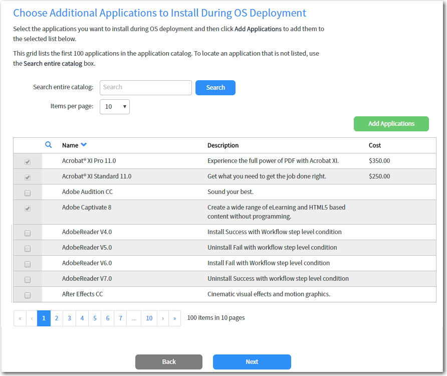 14. Select the applications that you want to migrate and then click Next. The Choose Additional Applications to Install During OS Deployment panel opens. Applications that have already been selected in previous panels are already selected and cannot be unselected.